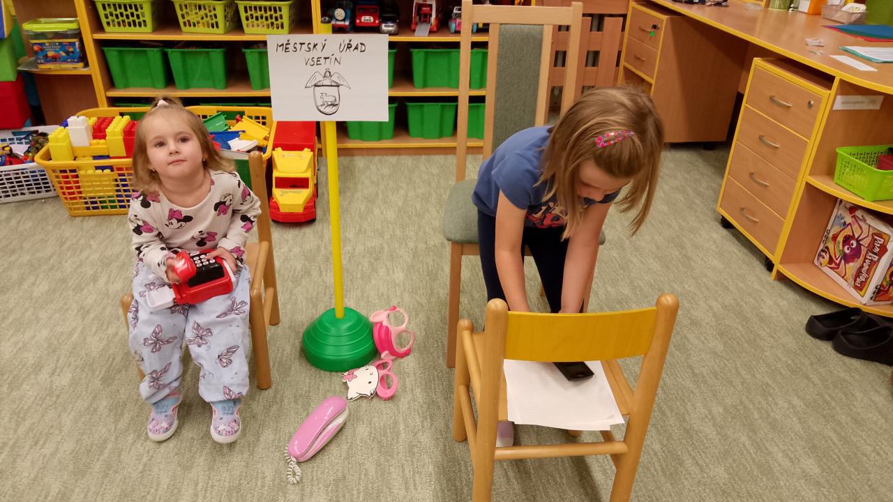 Děti si zahrály na to, jak to může vypadat uvnitř budovy. Požitkovým učením jsme se seznámili s budovou MĚÚ, Policií, Nemocnicí, Restaurací Bečva a Městskou knihovnou.