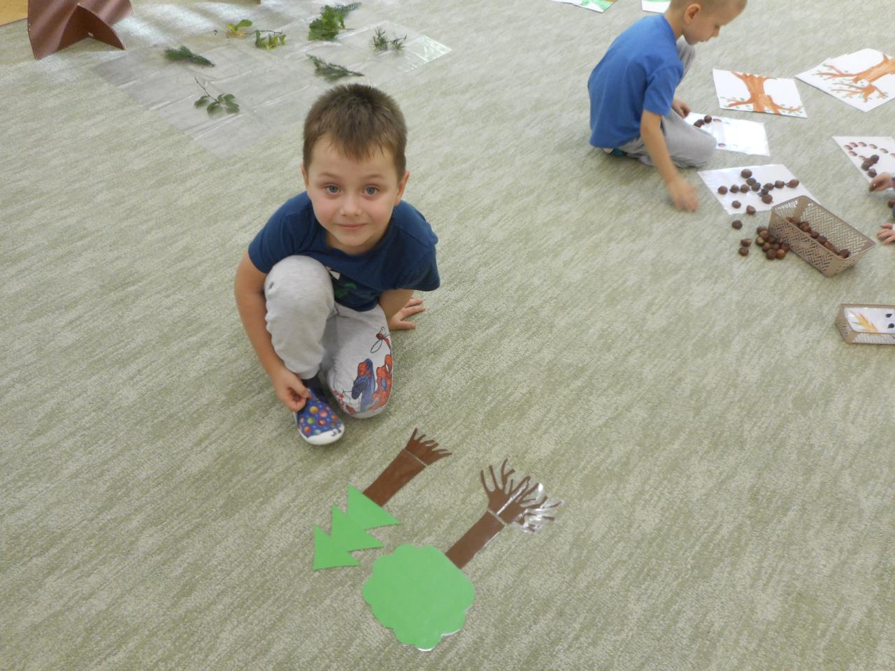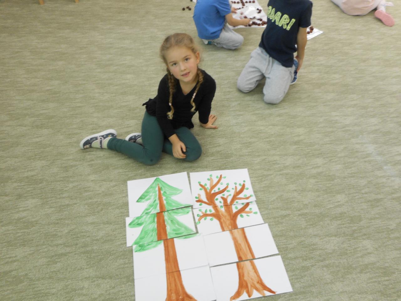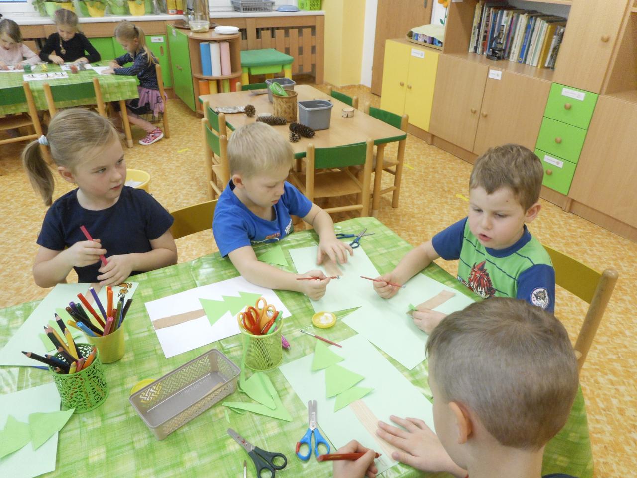 Děti se v rámci tématu seznámili s různými druhy stromů. Poznávaly jejich plody, listy, pozorovaly změny barev a učily se básničky, písničky. Jeden den se děti také seznámily s doktorem stromů - datlem, kůrovcem a poslouchaly nahrávky lesa.