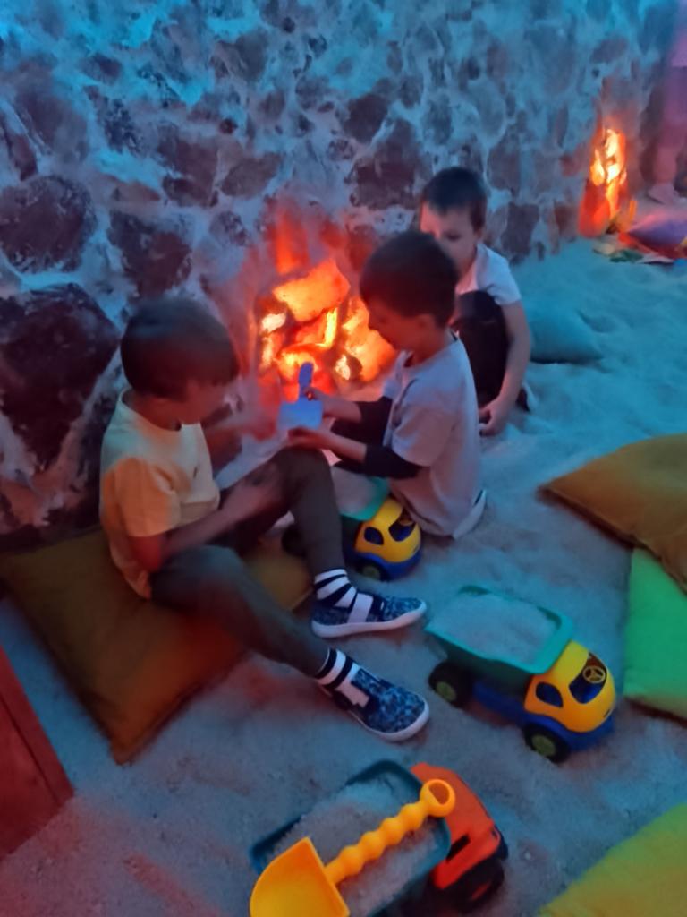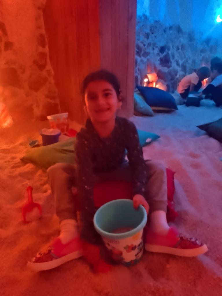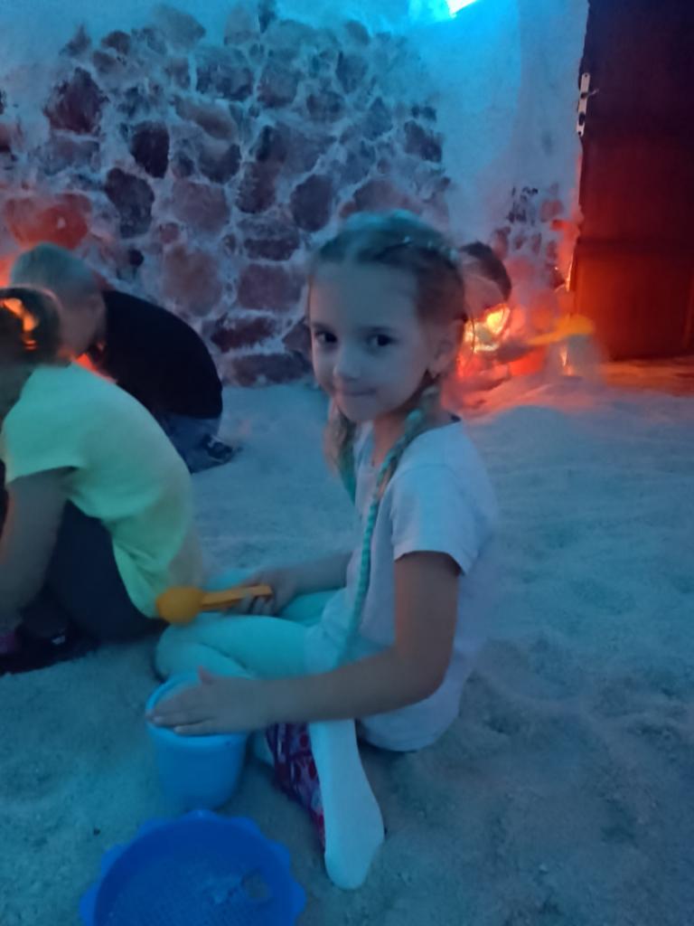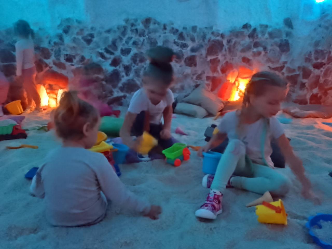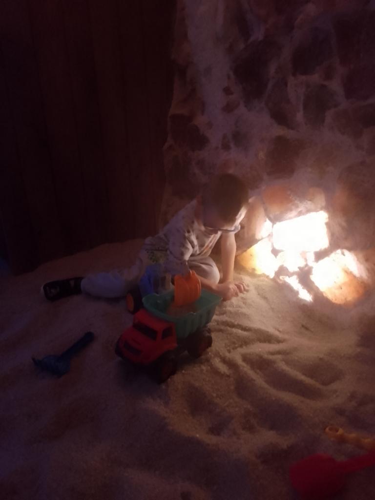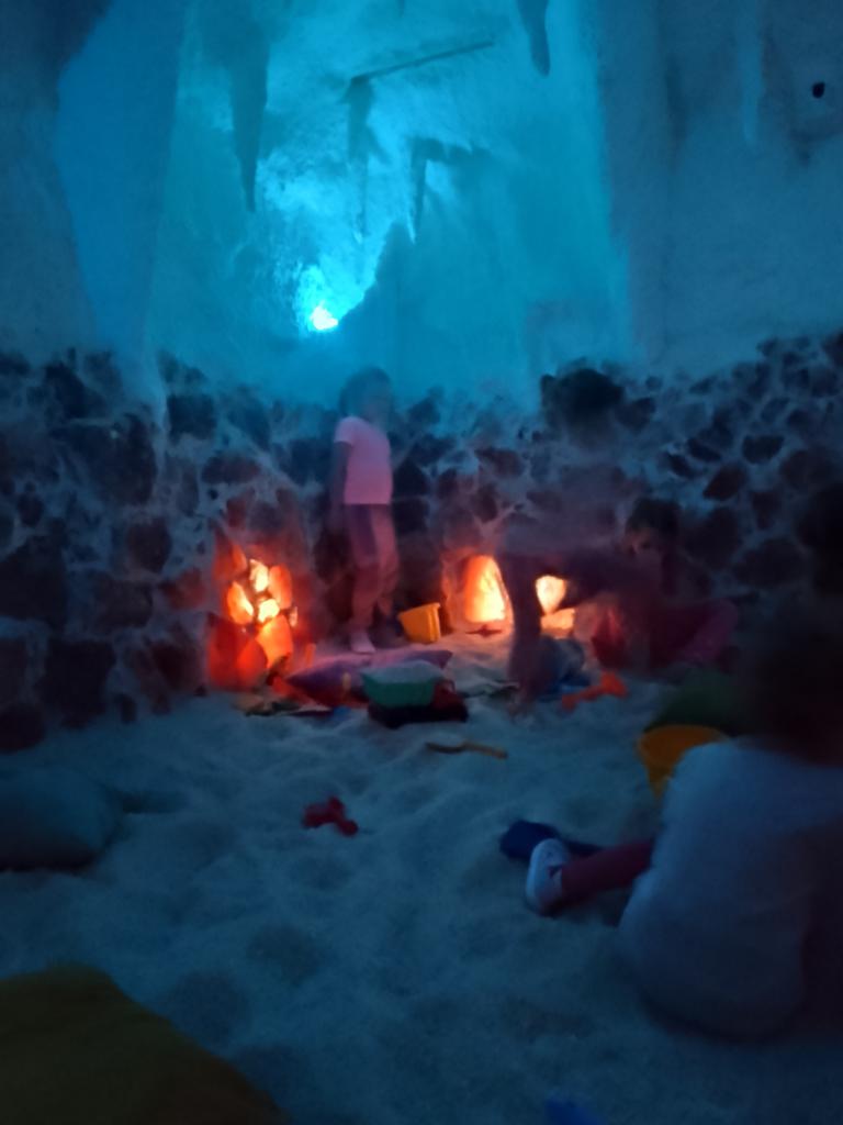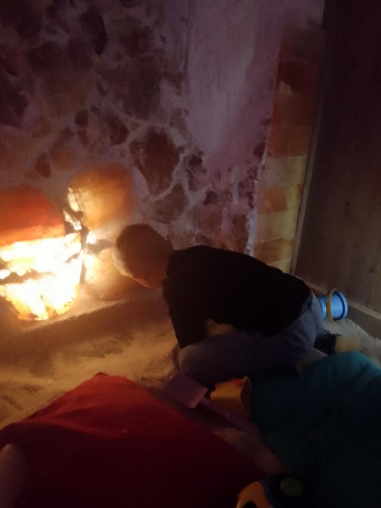Jak jsme se měli v solné jeskyni. Omluvte kvalitu fotek, je tam vlhko a přítmí.