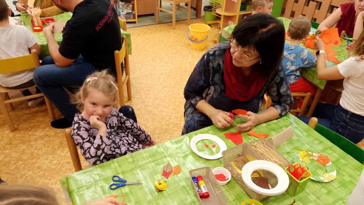 Většina dětí měla velkou radost, že se mohly společně s rodiči pustit do podzimního tvoření a připravit Vám také malé pohoštění. Pečená jablíčka (nejlepší jsou jadrničky) s cukrem a smetanou.