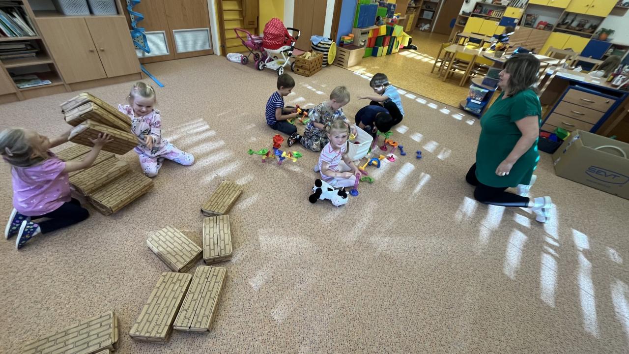 Tento týden si s dětmi povídáme na téma můj domov, moje město. Děti zkouší stavět různé budovy ze stavebnic, tvoří a hrají tématické pohybové hry. Rozvíjí svou fantazii a představivost. Také jsme se s dětmi vypravili na procházku městem Vsetín.