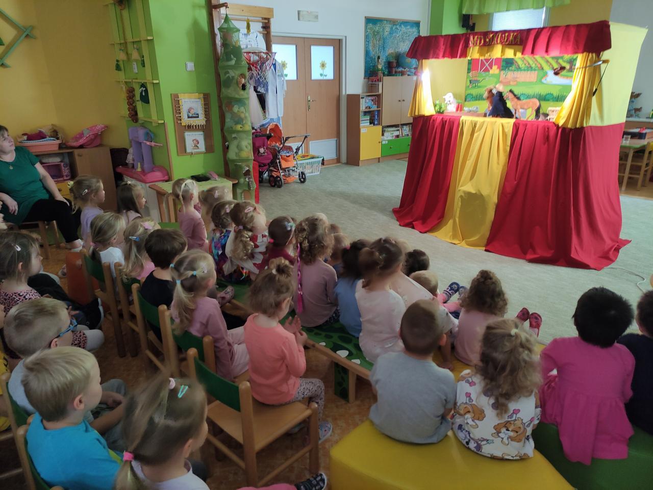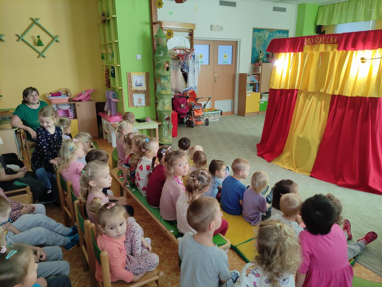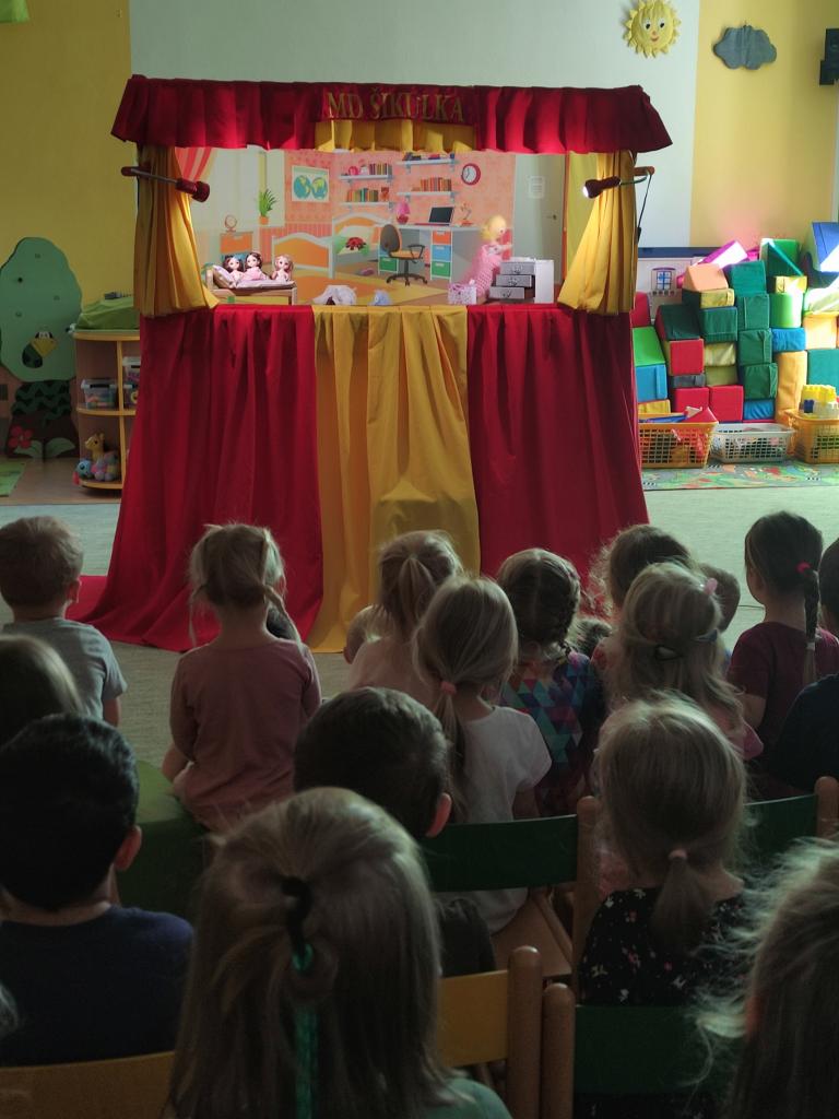 Dnes za námi do školky zavítalo divadlo. Děti shlédly pohádky: “O lakomé holčičce”, “O mlsné koze Líze” a “O hasiči záchranáři”. Všechny pohádky měly mravní ponaučení a děti velmi bavily.