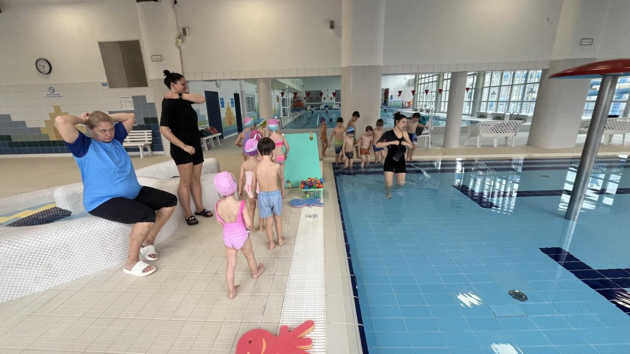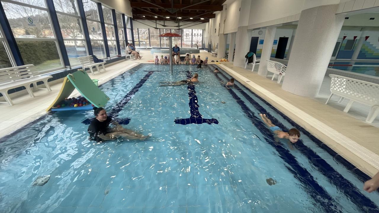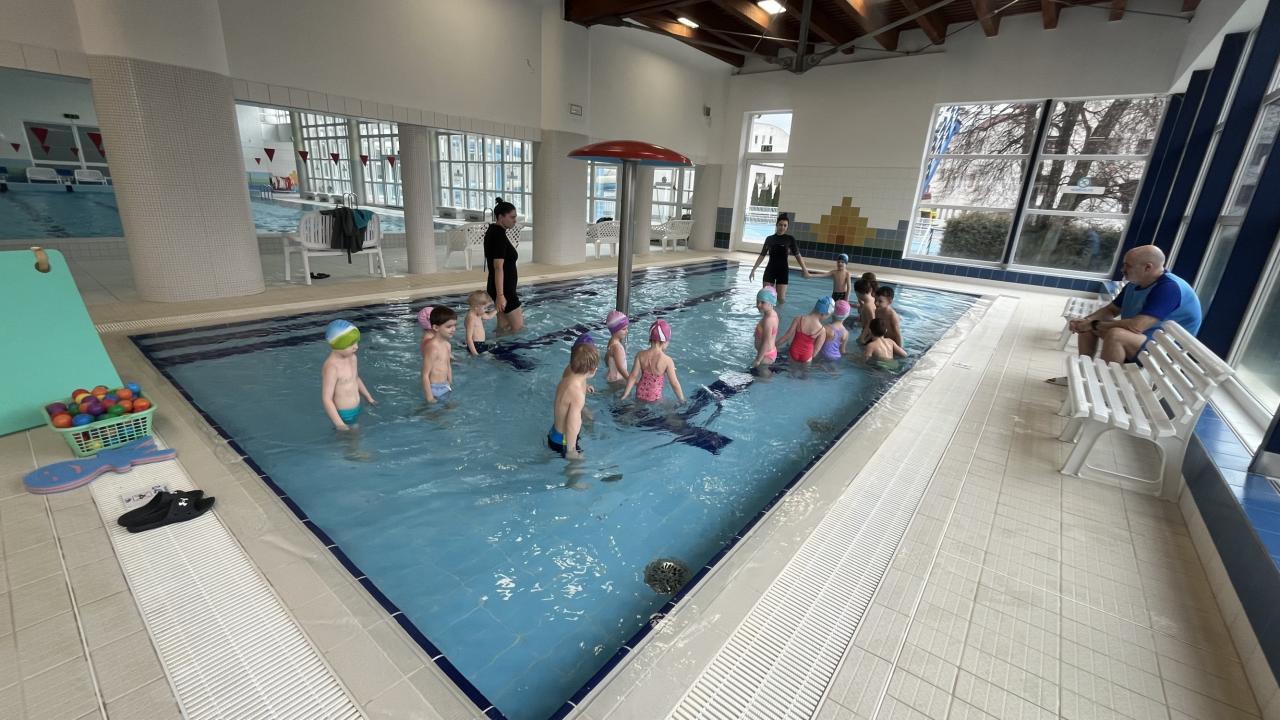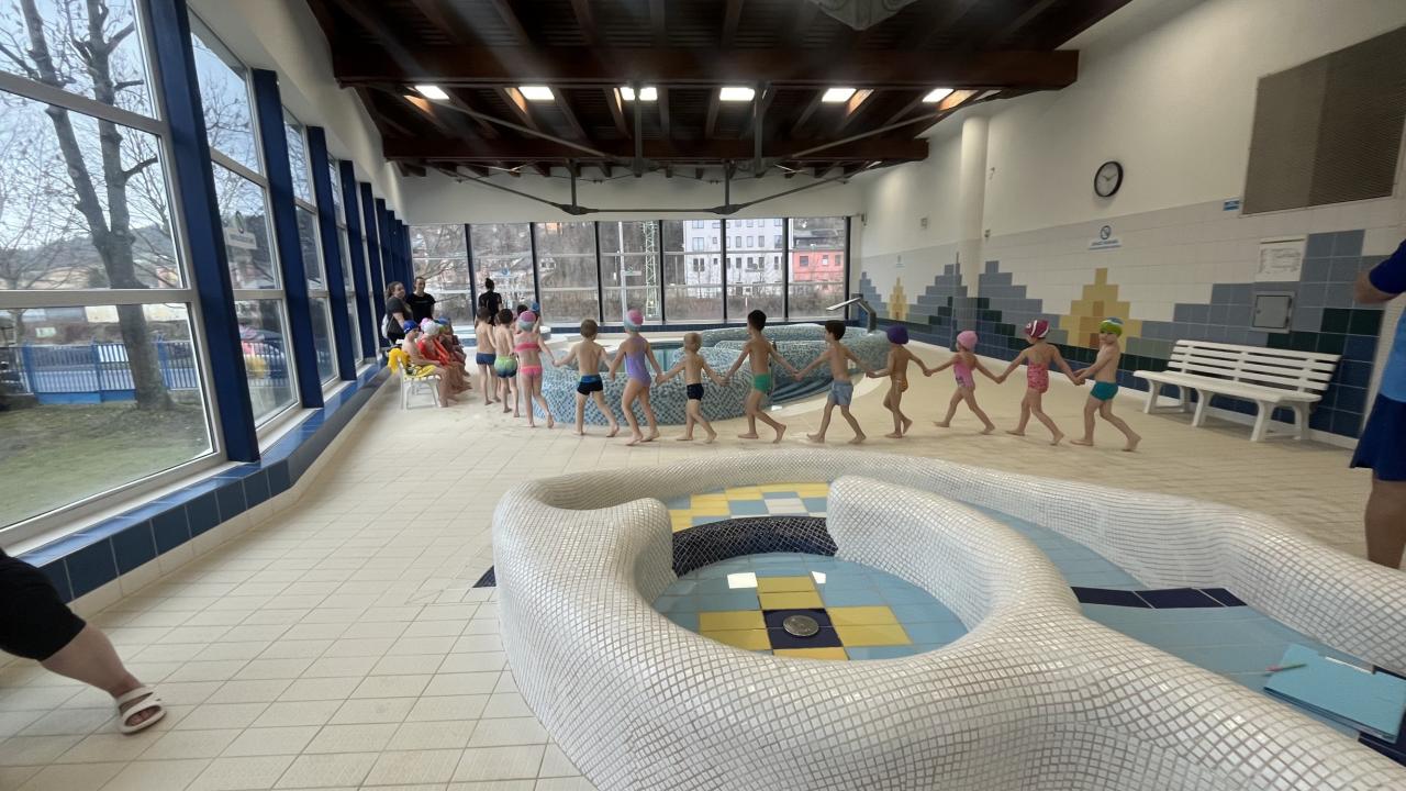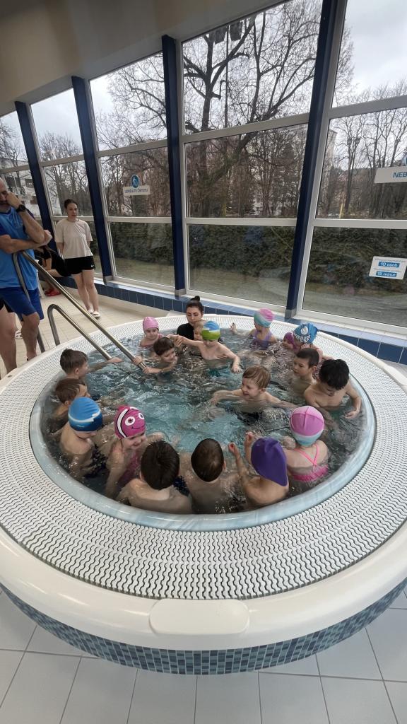Dnes proběhla 1. lekce plavání. Děti se seznámily nejen s prostředími pravidly v městských lázních, ale především s vodou. Trenéři si děti rozdělily do skupin dle plaveckých dovedností.